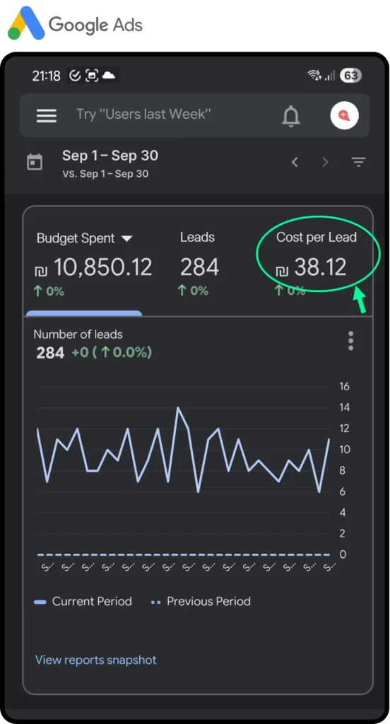 - עלות לליד: מ – 122 ₪ ל- 47 ₪ בלבד : ▲ 61%–